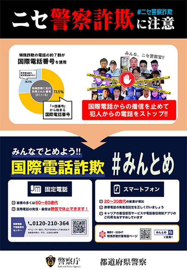 警察を名乗って電話をかけ、SNSに誘導して「逮捕する」などと言って、警察手帳を示して、捜査を名目に金銭をだまし取る「ニセ警察詐欺」が多発しています。